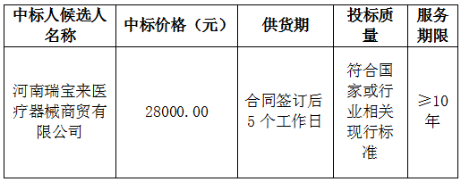 2025年12月22日在开封市陇海医院行政楼三楼会议室依法进行开标和评标活动。定标候选人公示期满后,定标委员会按照定标原则、方法和程序,于2025年12月30日在开封市陇海医院行政楼三楼会议室通过核查随机法进行定标。现将本次中标候选人结果公示如下。